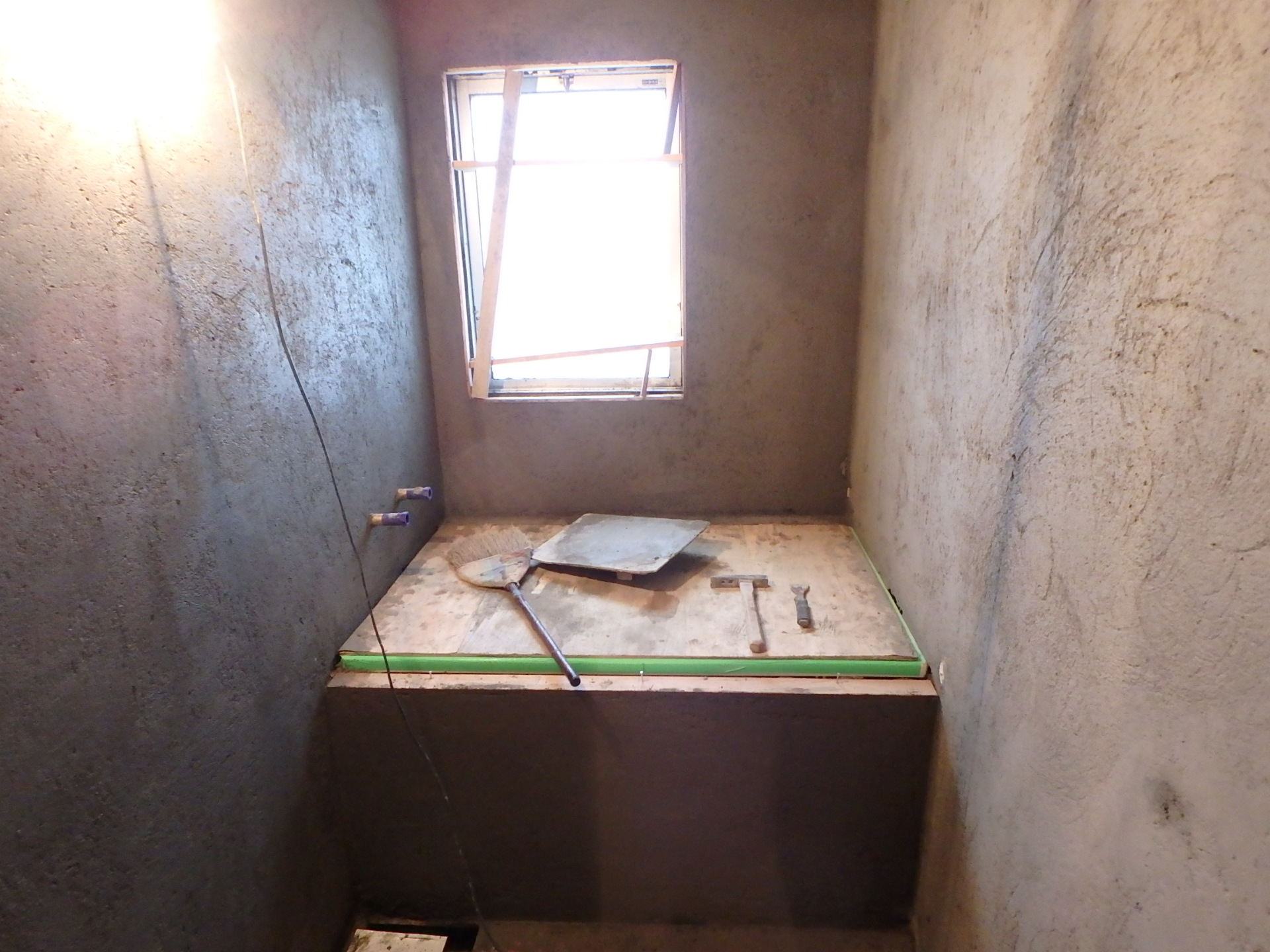 まず脱衣室と浴室を一体化させ、シャワーブースとバスタブ空間を確保し、ユニットバスを設置せずに左官による従来型のバスタブとすることで既存のスペースを最大限有効活用する計画としました。