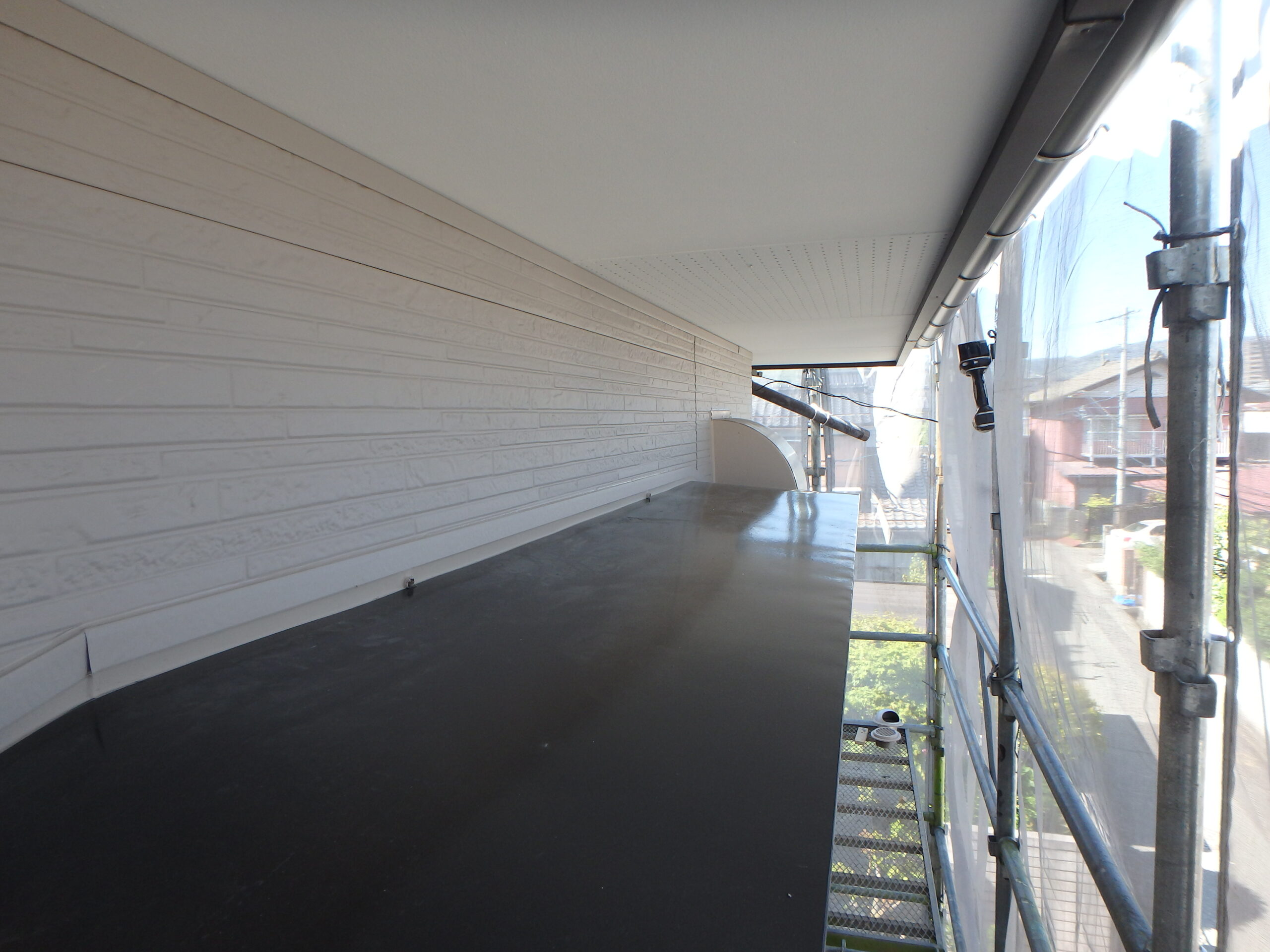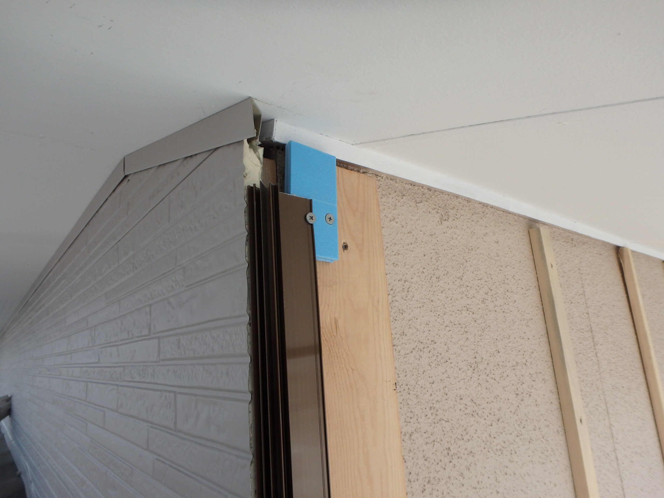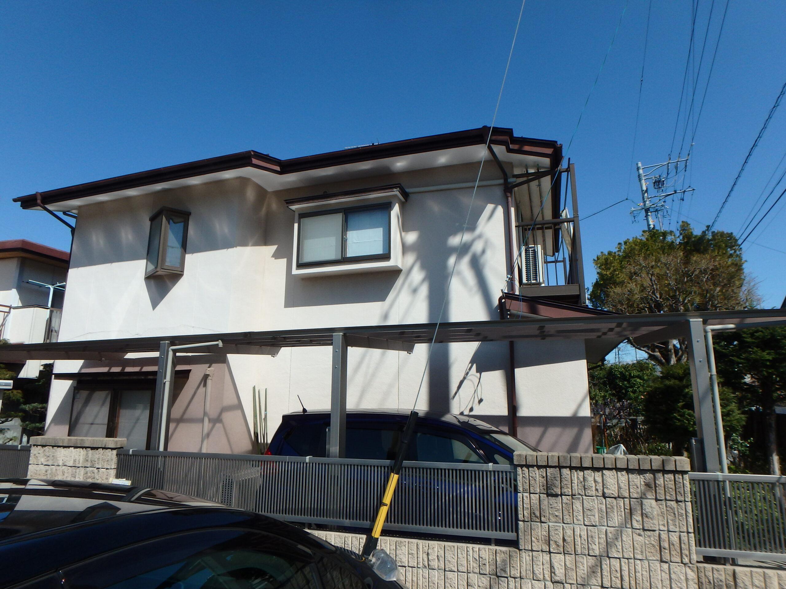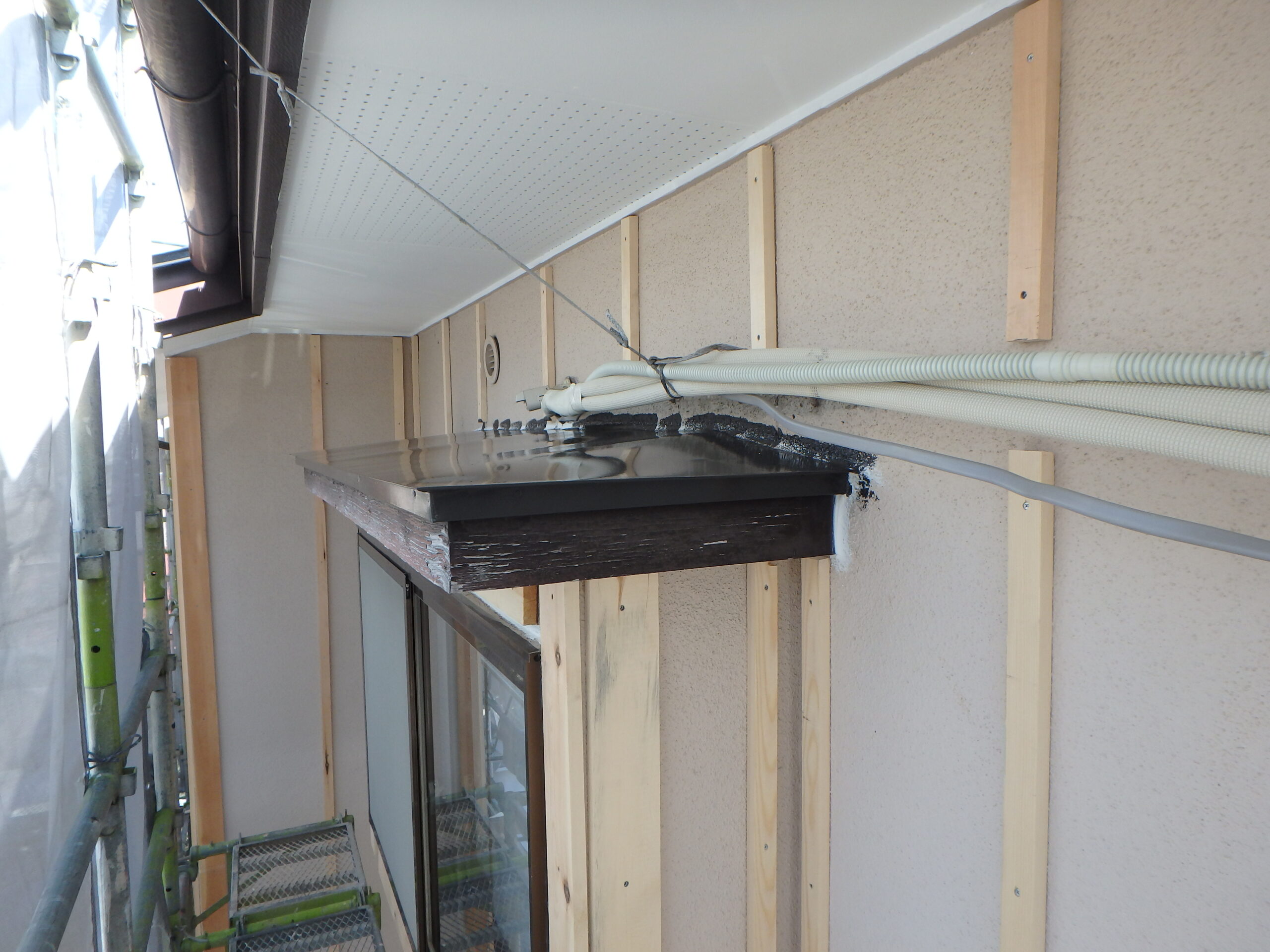 施工にあたっては作り付けの半出窓により外壁の出隅、入隅多いこと、モルタル外壁で外壁面の凹凸が多いことなどから資材の割り付けや施工面を平滑する工程などを重視するとともに、雨漏りへの対策を入念に行い機能性と美観に優れた良質な施工を行わせていただきました。